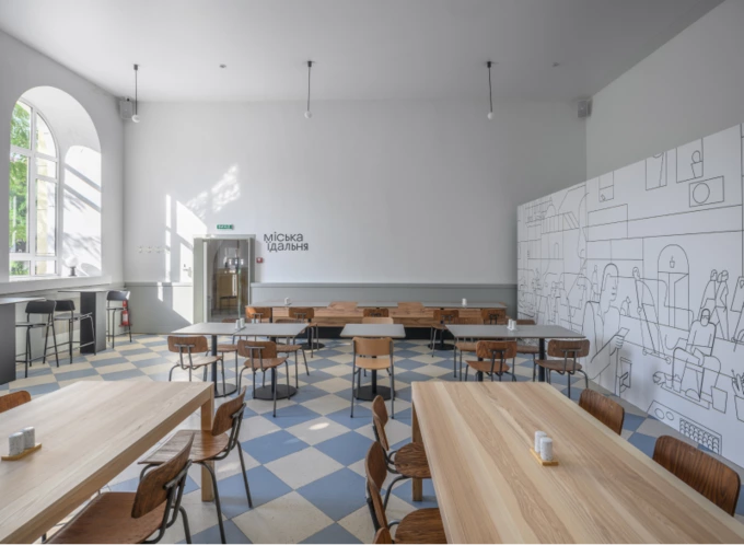 «Міська їдальня» – це ідея демократичного містяка, зведена до самої суті. Це буквально гречка, котлета й пюре. Це коли ти взяв піднос, пішов на лінію роздачі й указав пальцем, що ти будеш. Але, звісно ж, із сучасним дизайном, кльовою командою й фільтр-кавою», – каже Балбек у коментарі The Village Україна.