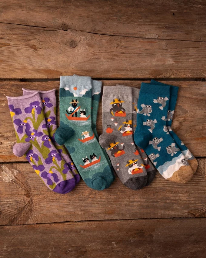 Наприклад, наші партнери мали два стелажі в сувенірній крамничці в Янагаві – це дуже туристичний регіон із каналами, який називають японською Венецією. Ми створили окрему колекцію під цю місцевість: усього чотири пари шкарпеток, але вони мали великий попит, тож продовжуємо їх робити вже два роки.