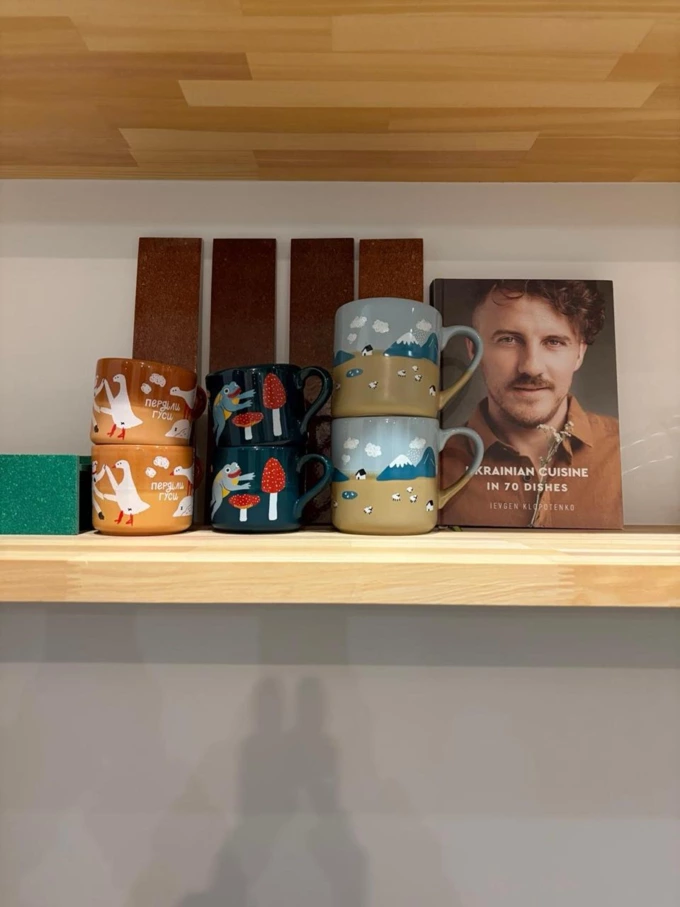 Японці люблять, коли в дизайн закладена глибока історія, як у наборі «Львівські кахлі», де ми використали орнаменти з плитки львівських під’їздів. Але добре продаються й милі дизайни з тваринами, навіть серія «Срав пес, перділи гуси». Цей дизайн у нас є не лише на шкарпетках, але й на горнятках. У цих горнятках у японському просторі подають напої. Я намагалася пояснити японцям, що означає ця фраза, але, думаю, немає сенсу перекладати її дослівно. До того ж дизайн усе детально ілюструє [сміється]. Також я пропонувала партнерам адаптовувати надписи на шкарпетках – щоб вони були не українською, а японською. Але вони вважають, що краще залишити кирилицею.
