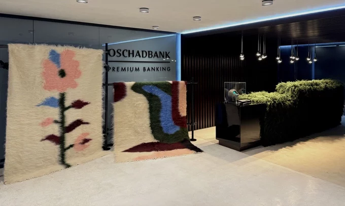 Інсталяція від Gushka демонструє глибинну цінність українського ремесла та перетворює банківський простір на галерею карпатської спадщини. Килимки ручної роботи тут не просто експонуються як самостійні артоб'єкти, вони прикрашають робочі зони преміум-центру, поєднуючи утилітарність і художність в єдиному просторі.