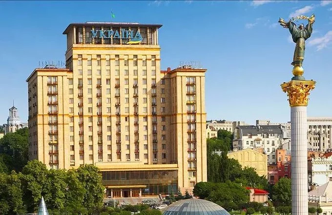 На місці готелю «Україна» стояв Хмарочос Гінзбурга, який збудували у 1910-1912 роках. Радянські війська підірвали будівлю під час німецького наступу на Київ. А у 1954-1961 роках тут звели готель, який до 2001 року мав назву «Москва».
