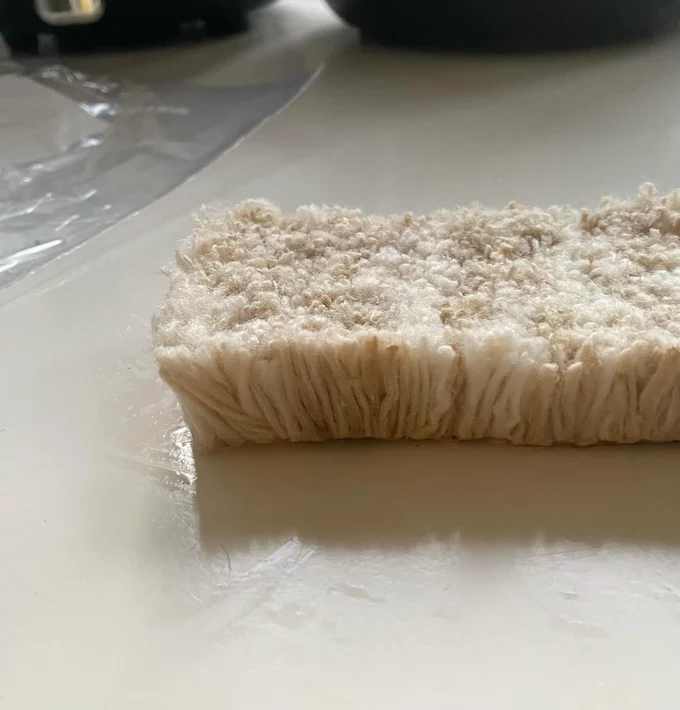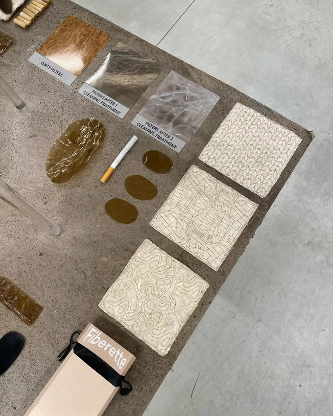 Матеріал, схожий на хутро вівці, виготовили з ацетату целюлози та полімеру, які використовується для виробництва фільтрів для цигарок. Для цього вона купувала недопалки у друзів, які палять, у місцевих центрах переробки або просто підіймала з підлоги.