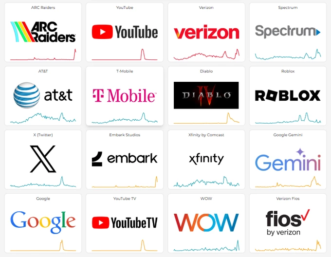 Також проблеми в роботі спостерігалися в Epic Games, ChatGPT, чат-боті Grok Ілона Маска, Spotify, соцмережі X і Canva для редагування зображень. Зброї торкнулися й сервісу DownDetector, що відстежує проблеми з роботою інших сайтів.