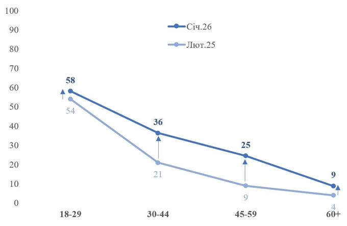 Дослідження проводили наприкінці січня 2026 року шляхом телефонних інтерв'ю. У ньому взяли участь понад тисяча дорослих респондентів з усіх підконтрольних регіонів України.