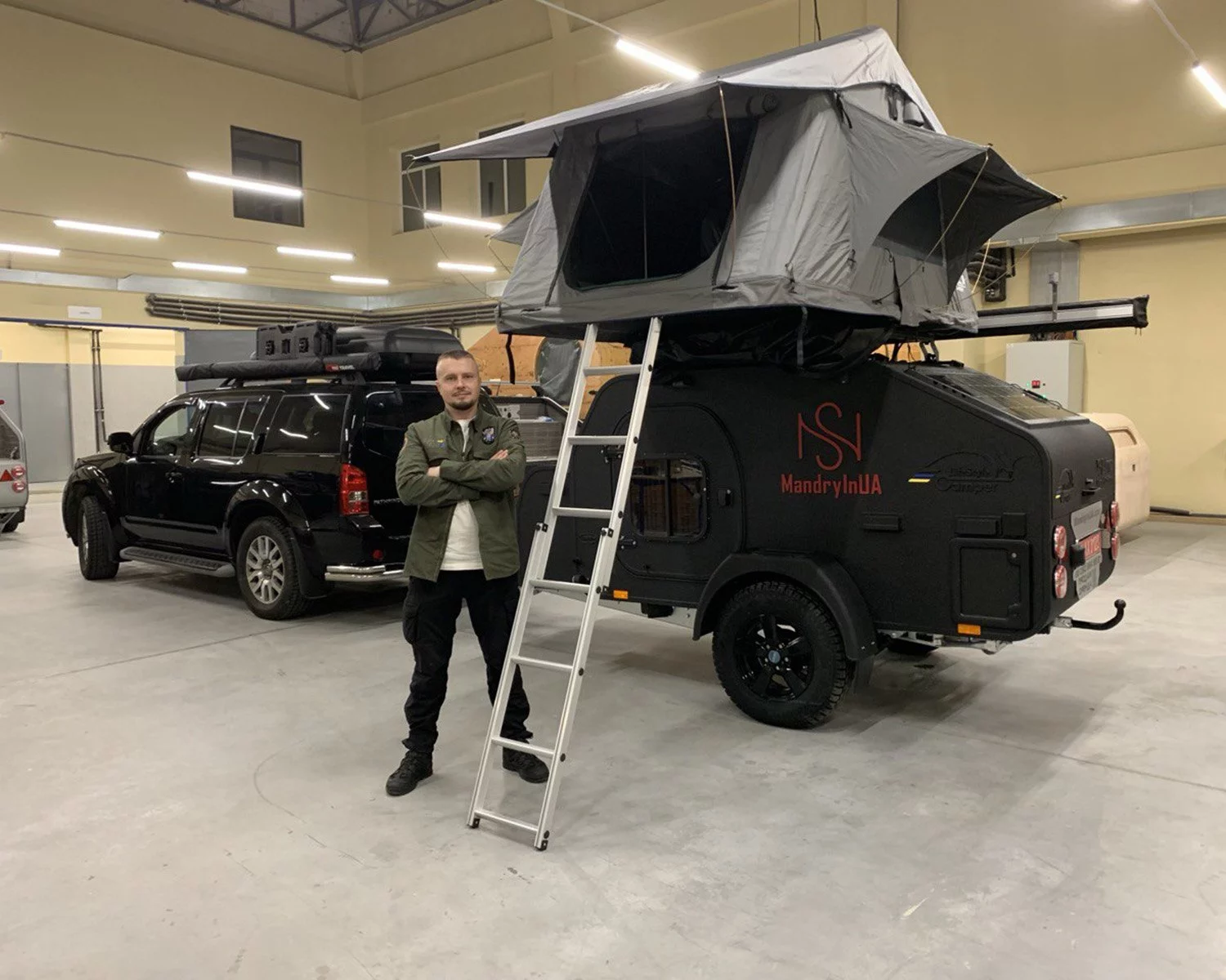 «Мандри in UA» – новий бізнес і для країни, і для мене, і для людей. Перша ідея народилася ще під час служби, ми переміщалися між посадками і щоразу потрібно було все робити заново: вирити бліндаж, туалет, поставити кухню й інше. Я тоді хлопцям під обстрілами кажу: «Уявіть, як класно було б взяти отакий будиночок на колесах і його присипати землею. Треба – відрили й перевезли на нове місце».
