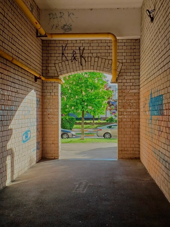 Коли ми вийшли з підвалу, щоб узяти деякі речі, я почула звук винищувача. Він пролітав прямо над будинком. З його пузатого корпусу було видно велику червону радянську п’ятикутну зірку. Він був чорно-зеленого кольору. Винищувач пролітав так низько, що зачіпав балкони сусідніх квартир і прямував до Гостомельського аеродрому. Звук і колір цього винищувача – базове відчуття війни для мене.
