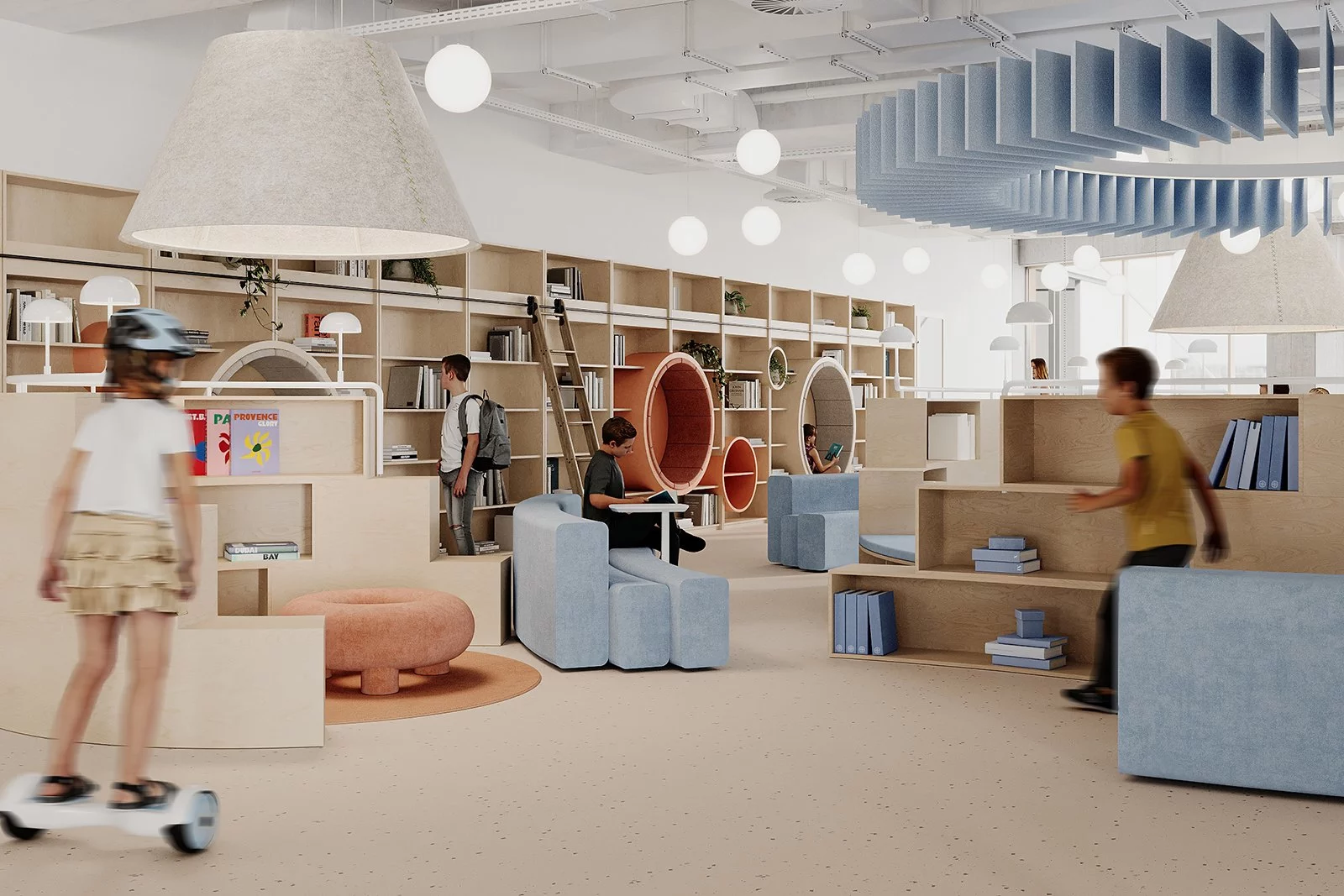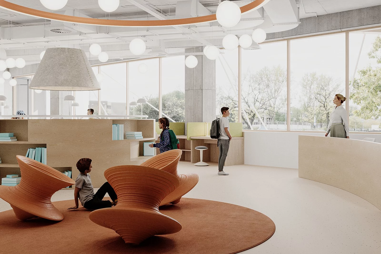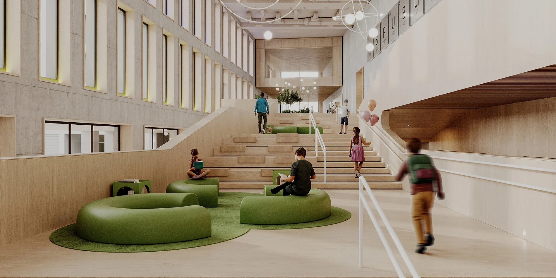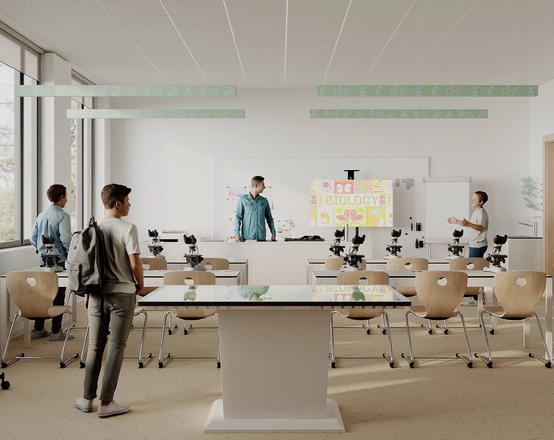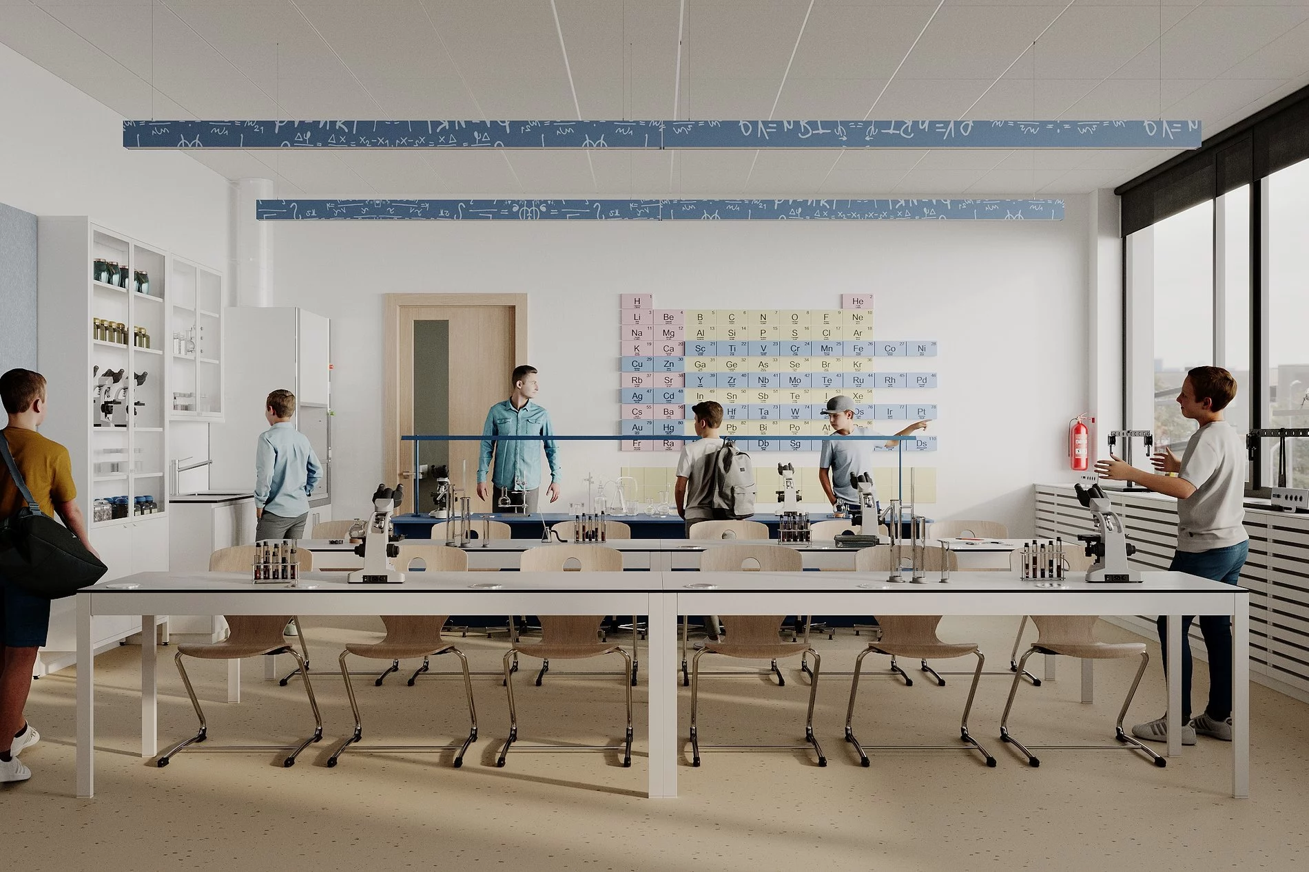 Кампус площею понад 26 000 м² розрахований на 1120 учнів і спроєктований як освітній кластер, де життя й навчання поєднуються. Тут на ваших дітей чекають: