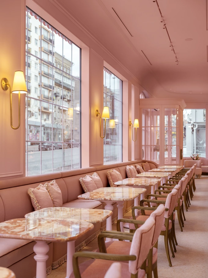 Джерелом натхнення стала «очищена класика паризьких резиденцій епохи Османа». Архітектори Nemov кажуть, що для них стало викликом створити зрілу та стриману, але рожеву кондитерську.