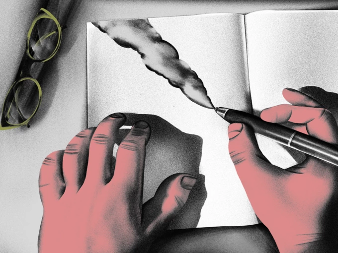 Розпорядниця веде блокнот, де записує біографічні дані померлих. Ілюстраторка Женя Полосіна