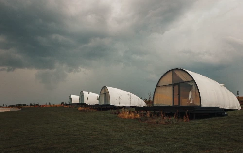 До бронювання доступні п'ять глемпів площею 36 м² кожен. Це глемпи з видом на лавандове поле і лиман.