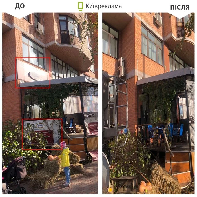 У жовтні в Києві демонтували 7204 м² незаконних рекламних вивісок. Також у серпні КП «Киїреклама» прибрала 325 незаконних рекламних конструкцій на Позняках й околицях житлового масиву.