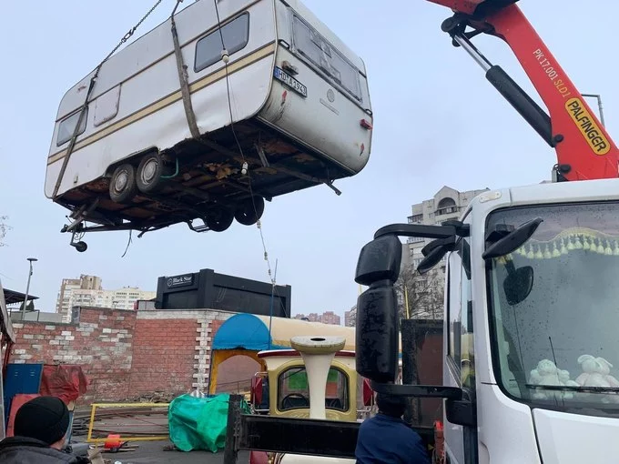 Біля кінцевої зупинки швидкісного трамвая «Старовокзальна», поруч із Центральним залізничним вокзалом, почали демонтувати МАФи. Це тимчасові споруди й інші елементи благоустрою, які розмістили без дозвільних документів.