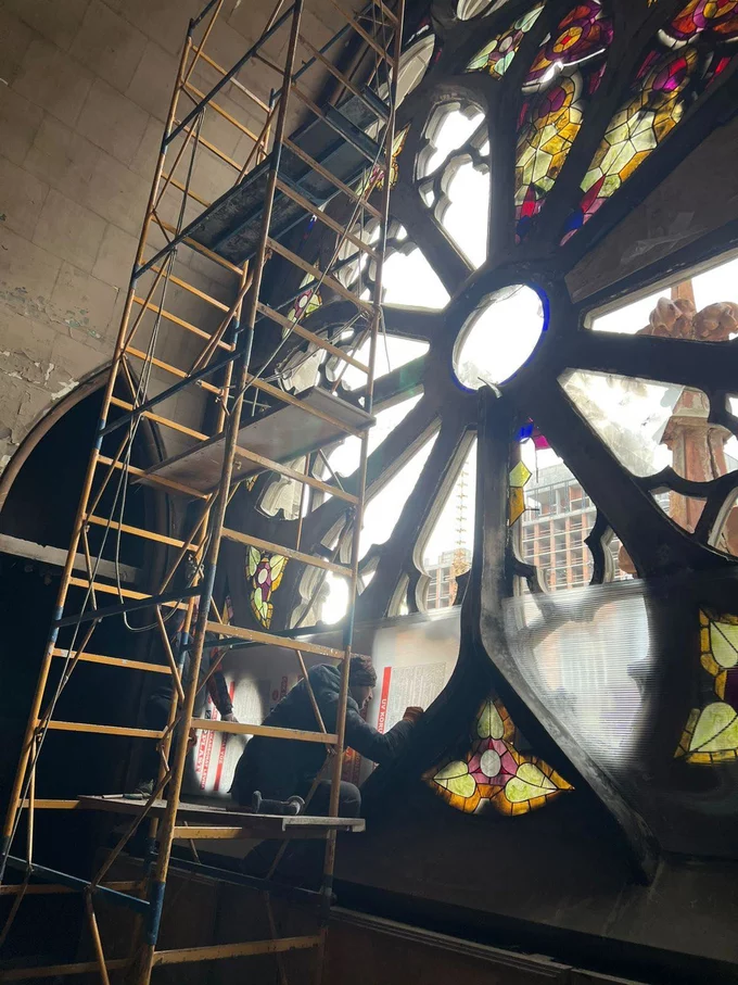 У грудні 2024 року костел святого Миколая отримав пошкодження внаслідок ракетної атаки. Там повилітали шибки, посипалася частина вітражів й посікло стіни будівлі. Пошкоджені вітражі обіцяли відновити за автентичними кресленнями й записами в паспорті реставрації об’єкта. Тоді Мінкульт обіцяв до кінця січня 2025-го прибрати скло та провести першочергові протиаварійні роботи, але не зробив цього.