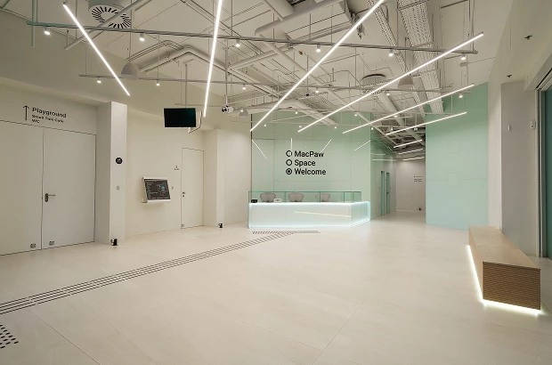 У просторі мінімалістичний дизайн, його обладнали новітніми технологіями. Також MacPaw Space безбар’єрний та доступний, кажуть в команді. Він має універсальні вхід, ліфт і вбиральню, тактильну плитку на підлозі, інформаційні таблички зі шрифтом Брайля, двоступеневі рецепцію й барні стійки в кафе.