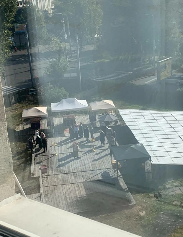 На території вже встановили вагончики, металеві паркани й МАФи, заливають бетон, вирубують дерева й облаштовують камери спостереження. Про плани будівництва на цій землі заявив Петро Семащук – настоятель храму на честь преподобного Феодора Освяченого.