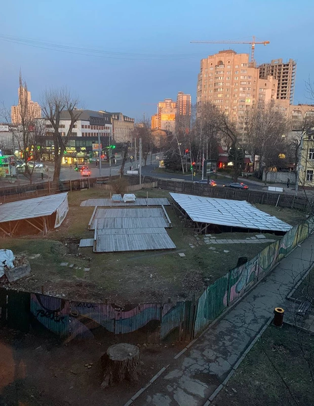 Колишній сквер «Січневий» на вулиці Овруцькій, 7 і 7-А перетворюють на будівельний майданчик для будівництва храму, повідомила стилістка Анна Бугера.