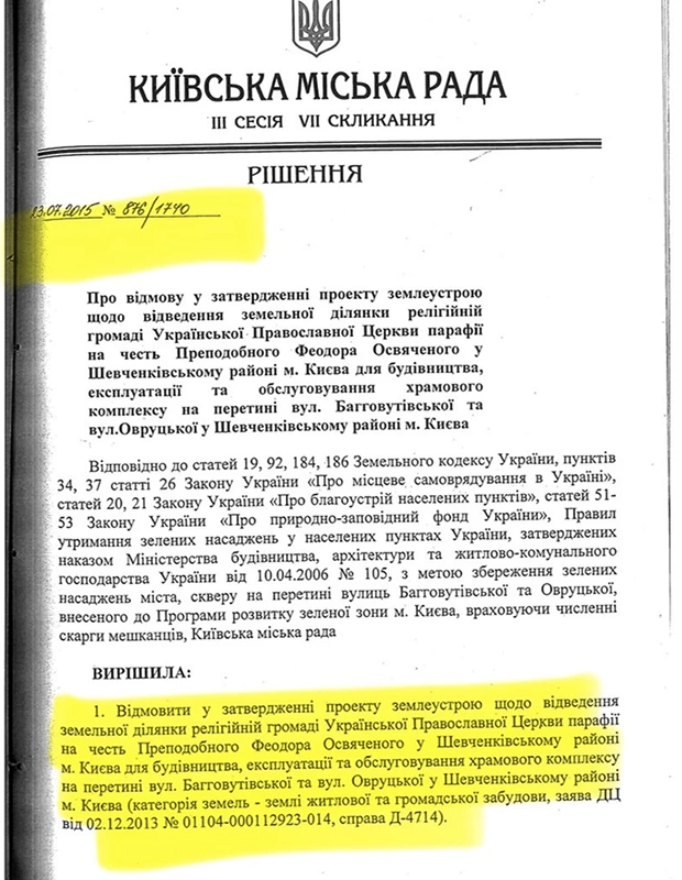 Однак вже 23 липня 2015 року парафії відмовили у виділенні землі для будь-якого будівництва або обслуговування на цій території. Тобто документ, на який посилається настоятель храму Петро Семащук, втратив чинність десять років тому.