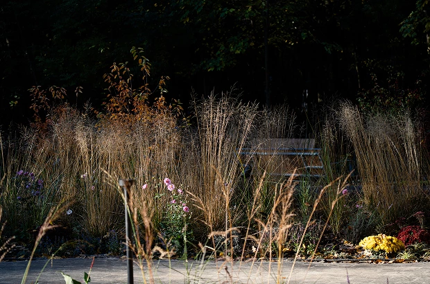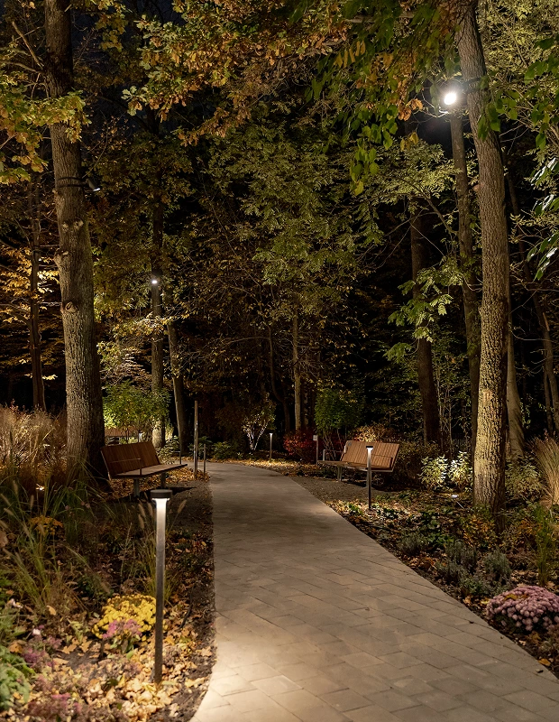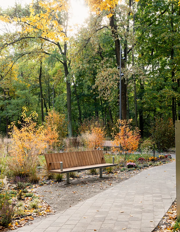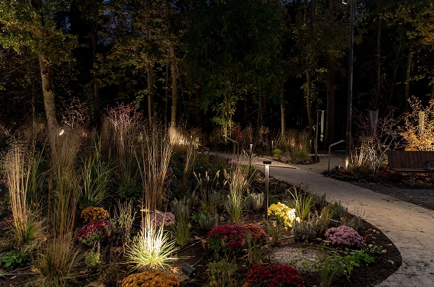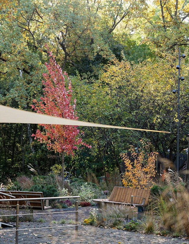 Усі рослини саду висадили без чітких ліній і симетрії, щоб відтворити природні умови, а також з різними періодами цвітіння, щоб простір залишався цікавим протягом року. Однак рослинам потрібен час, щоб адаптуватися і сформувати повноцінний ландшафт, зазначили в команді. Освітлення розробили Expolight, яке «формує медитативні маршрути й атмосферу затишку й безпеки».