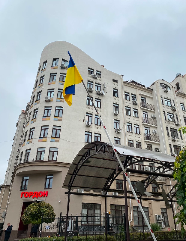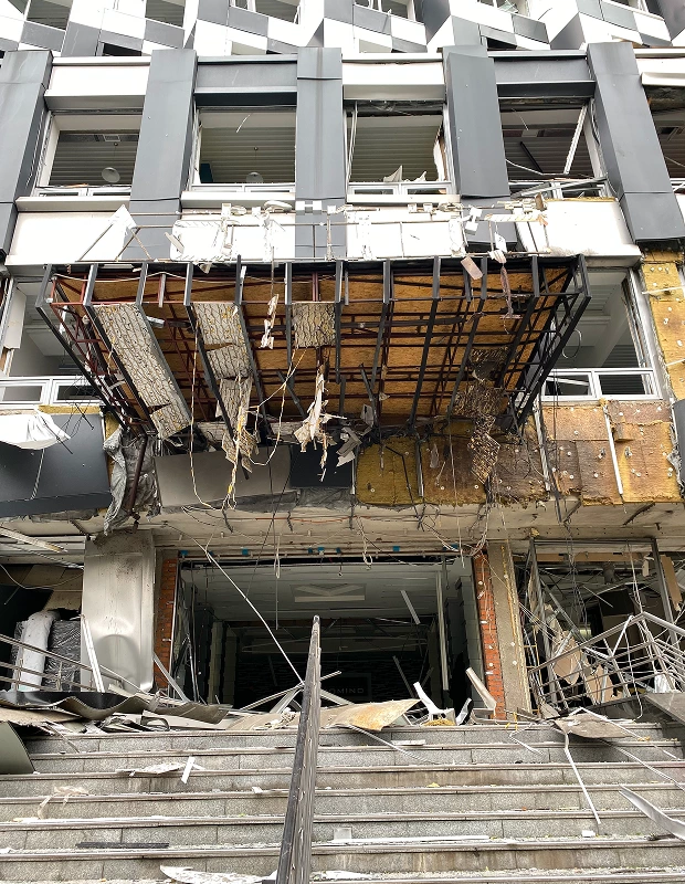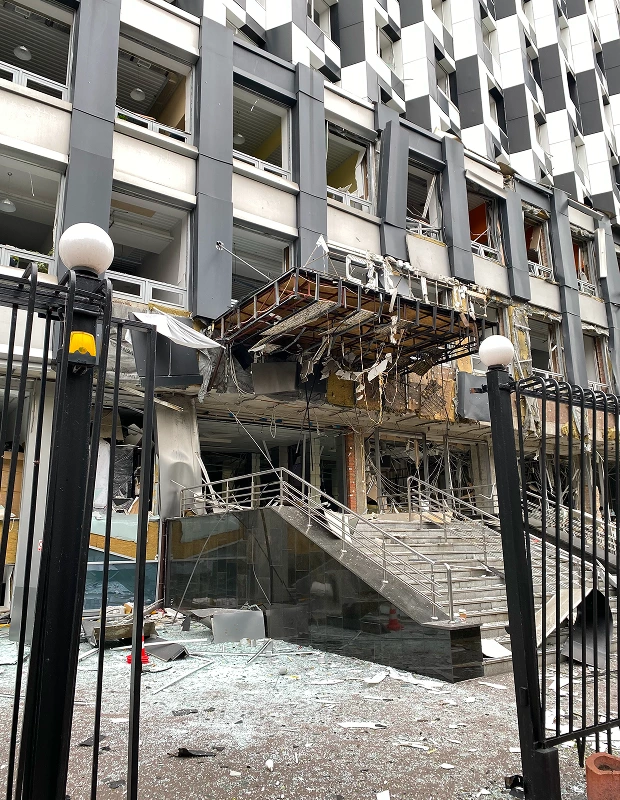 Consequences of the russian strike on a residential building and synagogue on Podil, Kyiv pic.twitter.com/l3BWo7x8Wp