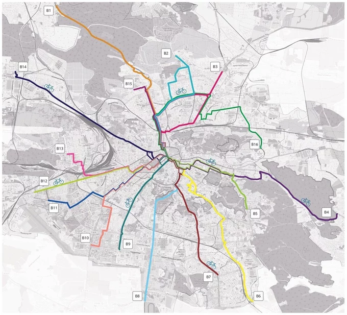 Маршрути пролягатимуть від густонаселених районів до центру, а також покращать сполучення між ними, кажуть у міськраді. На одних ділянках створять нові велодоріжки чи велосмуги, а на інших – нанесуть піктограми або розмежують потоки пішоходів і велосипедистів.