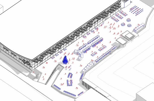 Щодо самої площі перед ринком – між нею та другим ярусом ринку вже є безбар’єрний перехід, тож простори можна інтегрувати між собою. Тут можуть відбуватись ярмарки, концерти, благодійні події.