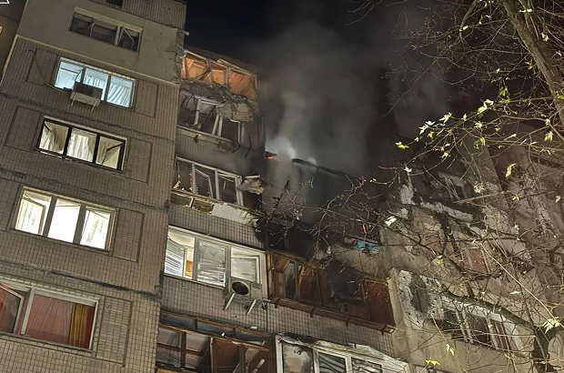В Оболонському районі ракета влучила у дев’ятиповерховий будинок, через що зайнялися квартири із сьомого до дев’ятого поверху на площі близько 100 м². Одну людину врятували, пожежу ліквідували.