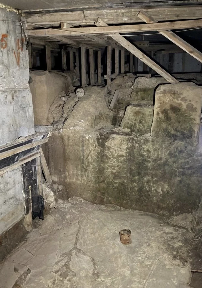 Також у підвалі будівлі, ймовірно, знайшли залишки великого оборонного валу часів Київської Русі, який проходив саме по вулиці Ярославів Вал. Його й зараз можна частково побачити в рельєфі Золотоворітського скверу та на вулиці Грінченка, в районі старої київської телевежі, пише Перов. А вулиця Ярославів Вал раніше мала назву Велика Підвальна, тобто та, що проходить під валом. Також поруч розташовані вулиці Прорізна, та що прорізана у валі, та вулиця Малопідвальна.
