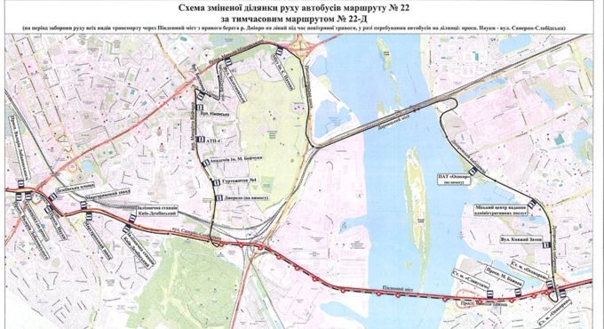 Автобуси, що курсують через Подільський міст, також змінюють маршрути під час повітряних тривог із 20 жовтня 2025 року.