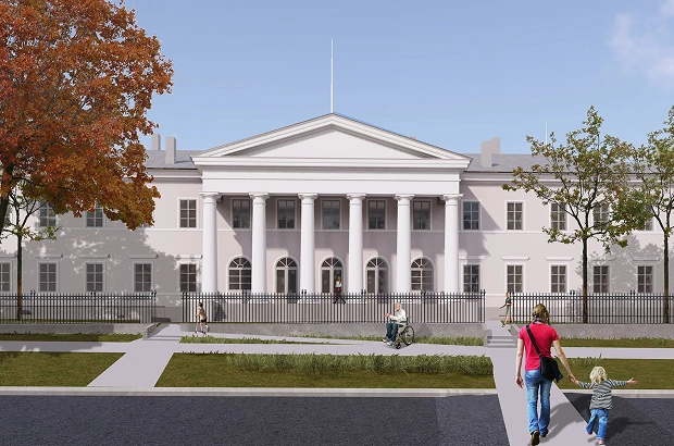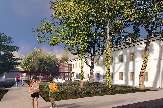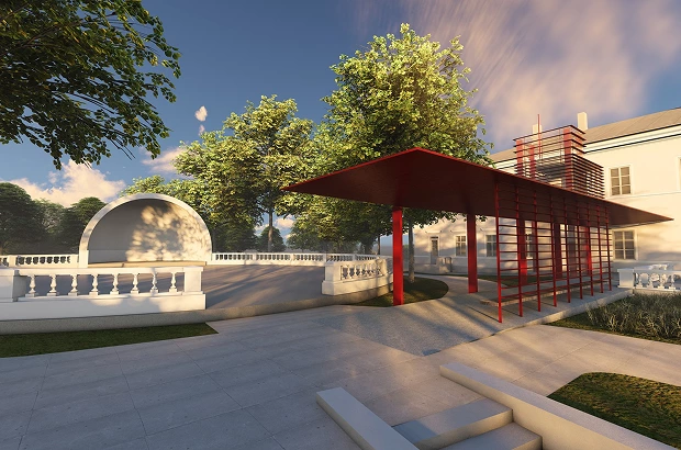 Крім того, команда пропонує зробити безбар’єрний доступ з пандусами зі сторони двору, аби не втручатися в історичний портик [крита галерея перед головним входом з колонадою або аркадою] і металеву огорожу, а паркування розмістити з боку вулиці Лагерне Поле.