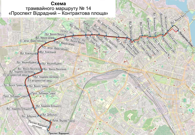 Водночас із 16 грудня припинить рух тимчасовий автобусний маршрут №14-Т (проспект Відрадний – Контрактова площа), який запровадили на період ремонтних робіт.