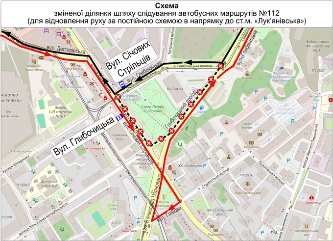 На вулиці Глибочицькій відновлять рух громадського транспорту із 16 грудня 2025 року, повідомляє КМДА.