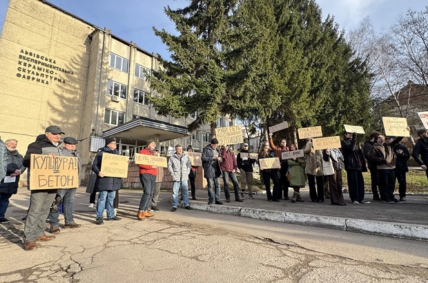 «Культура ≠ бетон». У Львові вийшли на протест проти знищення кераміко-скульптурної фабрики