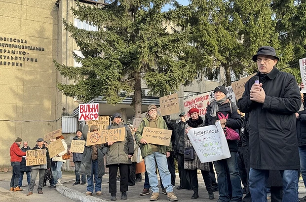 У Львові вийшли на акцію протесту проти знищення Львівської кераміко-скульптурної фабрики, повідомили у Львівській міській раді.