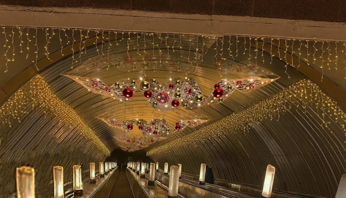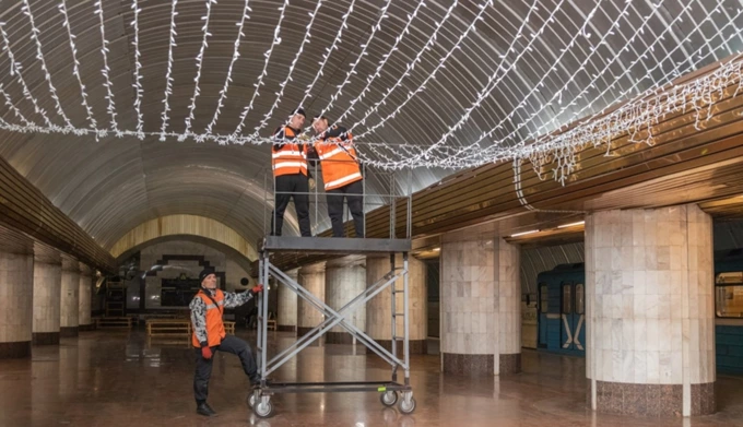 Це зробили для того, щоб убезпечити містян. На станції метро «Вокзальна» вже розпочали монтаж інсталяції. Спочатку оформлять саму станцію, а потім повісять гірлянди над ескалаторами. Це робитимуть у нічний час, адже рух метро не зупинятимуть.