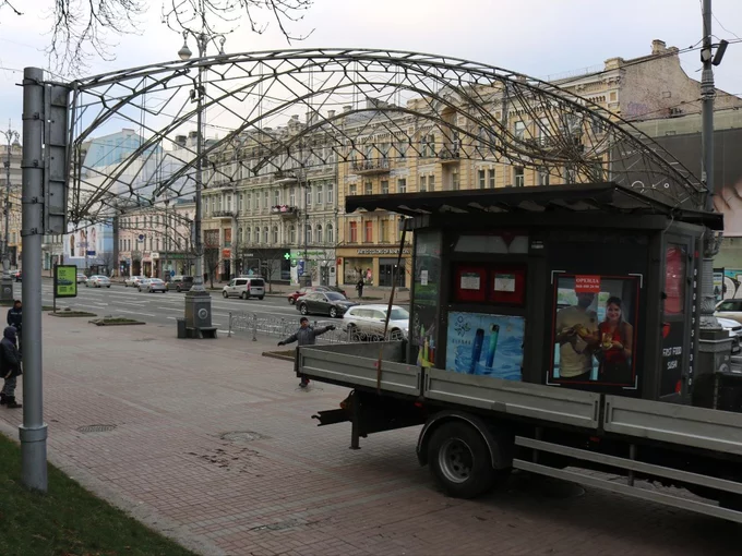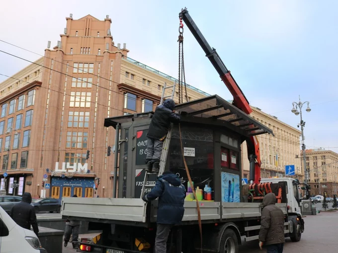 На Хрещатику демонтували перший МАФ, у якого закінчився строк дії дозвільних документів, повідомляє КМДА.