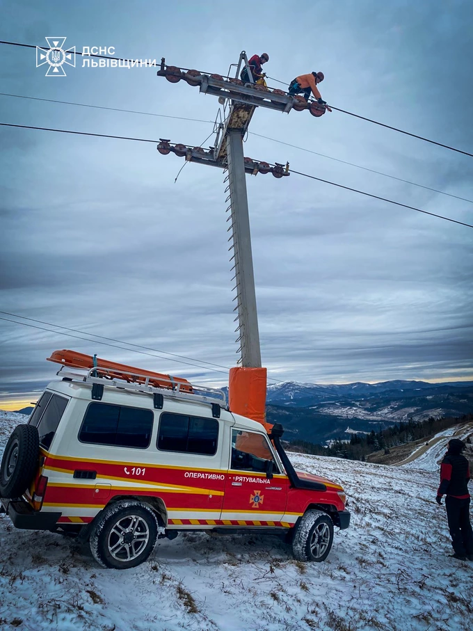 Підіймач зупинився близько 11:50 в селищі Волосянка. За повідомленням ДСНС, там перебувають близько 80 людей.