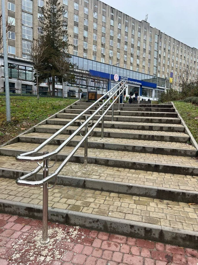 Окрім станції, на території біля реабілітаційного центру встановили нові поручні та змонтували тактильні індикатори для людей із порушенням зору. Вони розташовані вздовж вулиці Івана Миколайчука до головного входу лікарні Святого Пантелеймона.
