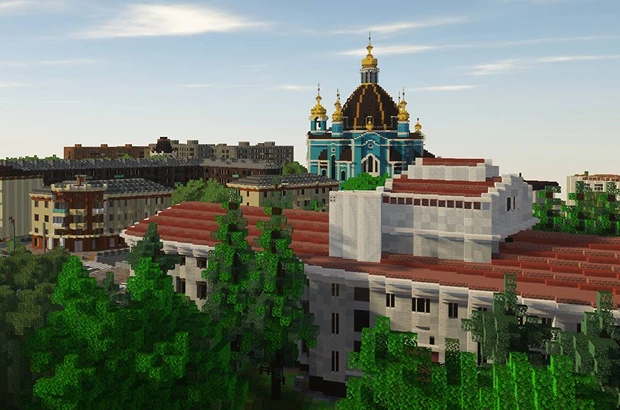 Маріупольський драмтеатр та Храм Покрови Пресвятої Божої Матері, які відтворили у Minecraft