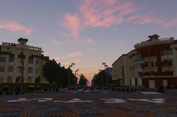 Площа перед Маріупольським драмтеатром, яку відтворили у Minecraft