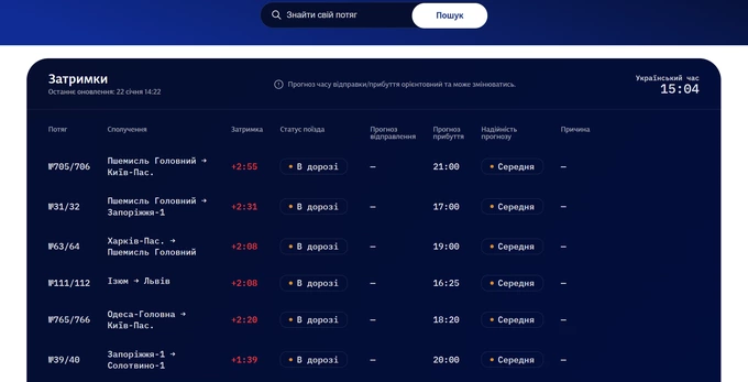 Тепер пасажирам доступний пошук поїзда, відображається статус поїзда, прогнозований час прибуття. Також мають вказувати причину затримки поїздів.