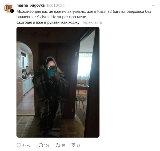 У соціальних мережах люди діляться досвідом, як вони зігріваються вдома без опалення, зокрема, хтось купив газовий обігрівач, а хтось ходить удома в декількох шарах одягу й у рукавичках.