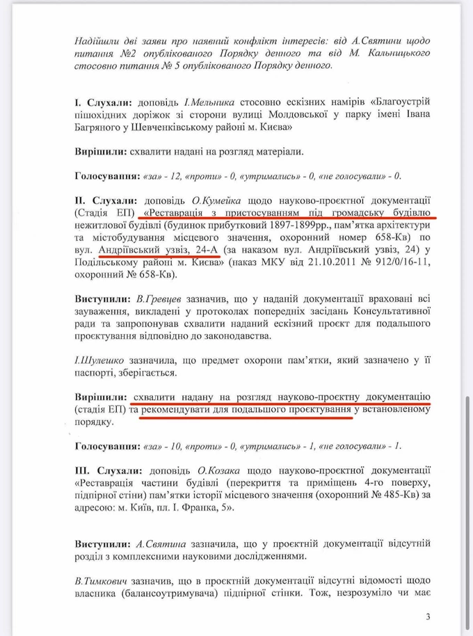 Департамент охорони культурної спадщини майже одноголосно підтримав розбирання пам’ятки 1897 року на Андріївському узвозі, 24, повідомив пам’яткоохоронець Дмитро Перов.
