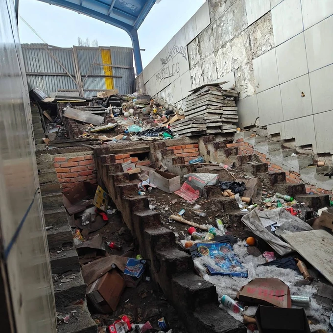 На сходах і прольотах станції лежить різне сміття – порожні пляшки, ящики, коробки, одяг та інші відходи. Водночас поруч зі станцією розташовані десятки різних лікарень, пояснила Семенова.
