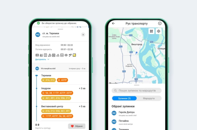 Щоб отримувати повідомлення про зміни в роботі транспорту, треба додати потрібні станції метро або електрички, маршрути до «обраних» у розділі «Рух транспорту». Додаток заздалегідь надсилатиме push-сповіщення про зміни в русі, щоб користувачі могли скоригувати маршрут.