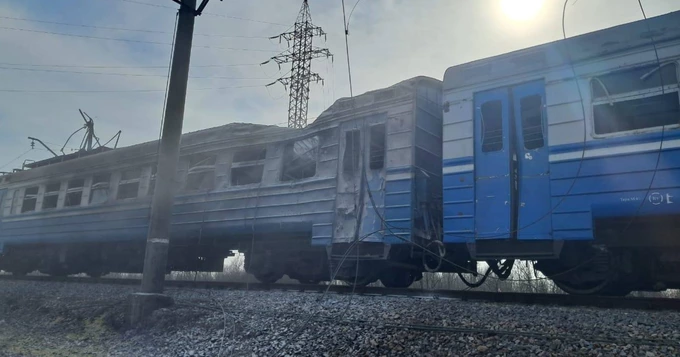 Росіяни поцілили по цивільному приміському потягу, який перебував у русі на Дніпропетровщині, повідомили в Укрзалізниці.