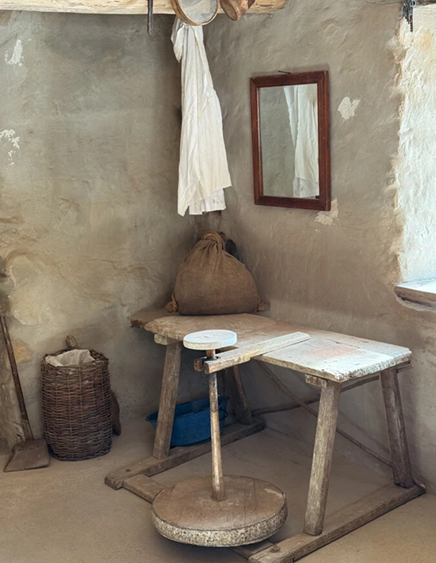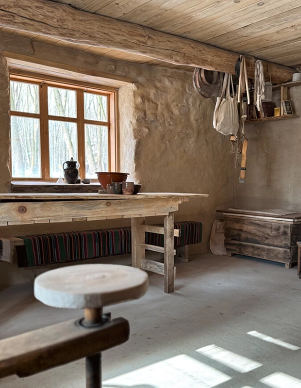 У будівлі є два приміщення: у першому – гончарна піч, а у другому – майстерня з гончарним кругом та інструментами. Поруч також є «шіпка» для зберігання речей. Це єдина кам’яна споруда в музеї – її стіни збудовані з пісковика, а дах покритий черепицею.