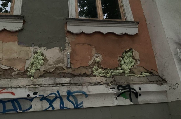 У будівлі також вирізали частину несучих конструкцій, знищили дерев'яний декор фасаду, тріщини заклали монтажною піною. У будівлі є пліснява, стіна з боку двору може обвалитися, а через знищення несучих балок може завалитися весь другий поверх.