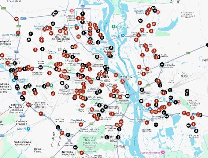 Громадська організація U-Cycle розробила інтерактивну мапу дорожньо-транспортних пригод із важкими наслідками в Києві.