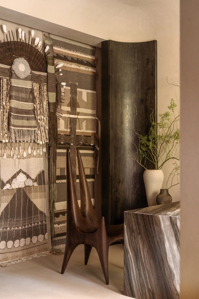 Стіни та стелі вкрили штукатуркою з додаванням конопляних волокон. За словами Долгоп'ятової, цей інтер'єр фокусується на зв'язку із землею та внутрішній силі.