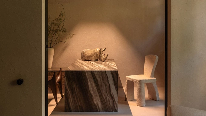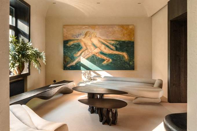 На рецепції розмістили твори сучасного мистецтва й колекційні меблі від Тетяни Красуцької та Naturaceramica. У холі стоять скульптурні сидіння італійського бренду Riva 1920, виготовлені з переробленої деревини.